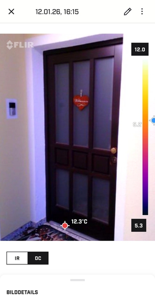 Ich nutze als Wärmebildkamera das FLIR ONE Edge Modul.